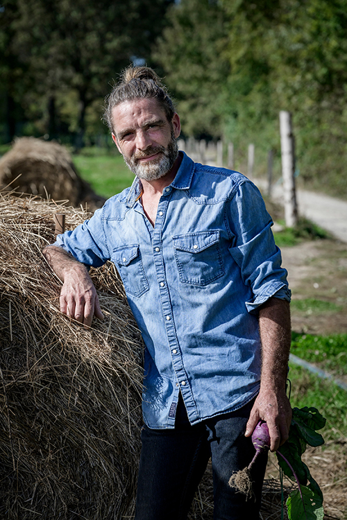 Sur moins de deux hectares de terres jusque-là inutilisées, il cultive à la main une grande diversité de légumes en agriculture biologique, privilégiant les semences locales et le respect des cycles naturels. Attaché aux circuits courts, il distribue sa production à la ferme, en AMAP, auprès de restaurateurs et même dans les cantines scolaires, convaincu que chaque acte d’achat peut contribuer à transformer notre système alimentaire.